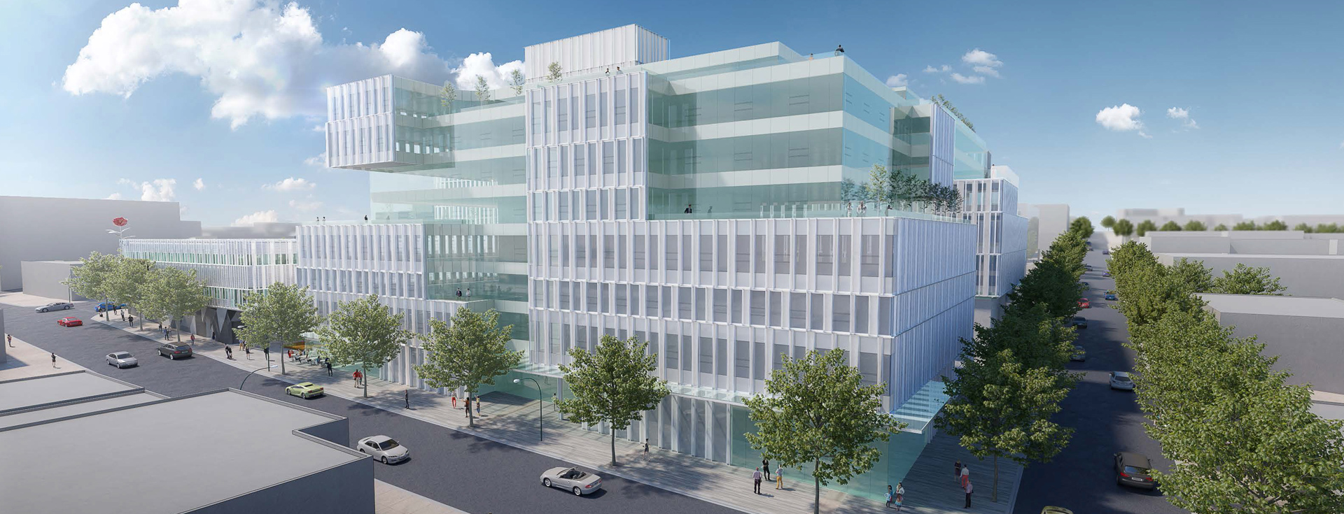 The architectural language for the buildings, along with the design of the public realm and links with the overall campus, creates a cohesive visual identity and unique destination experience. The buildings are designed to the highest sustainable standards and will achieve LEED® Gold status.
