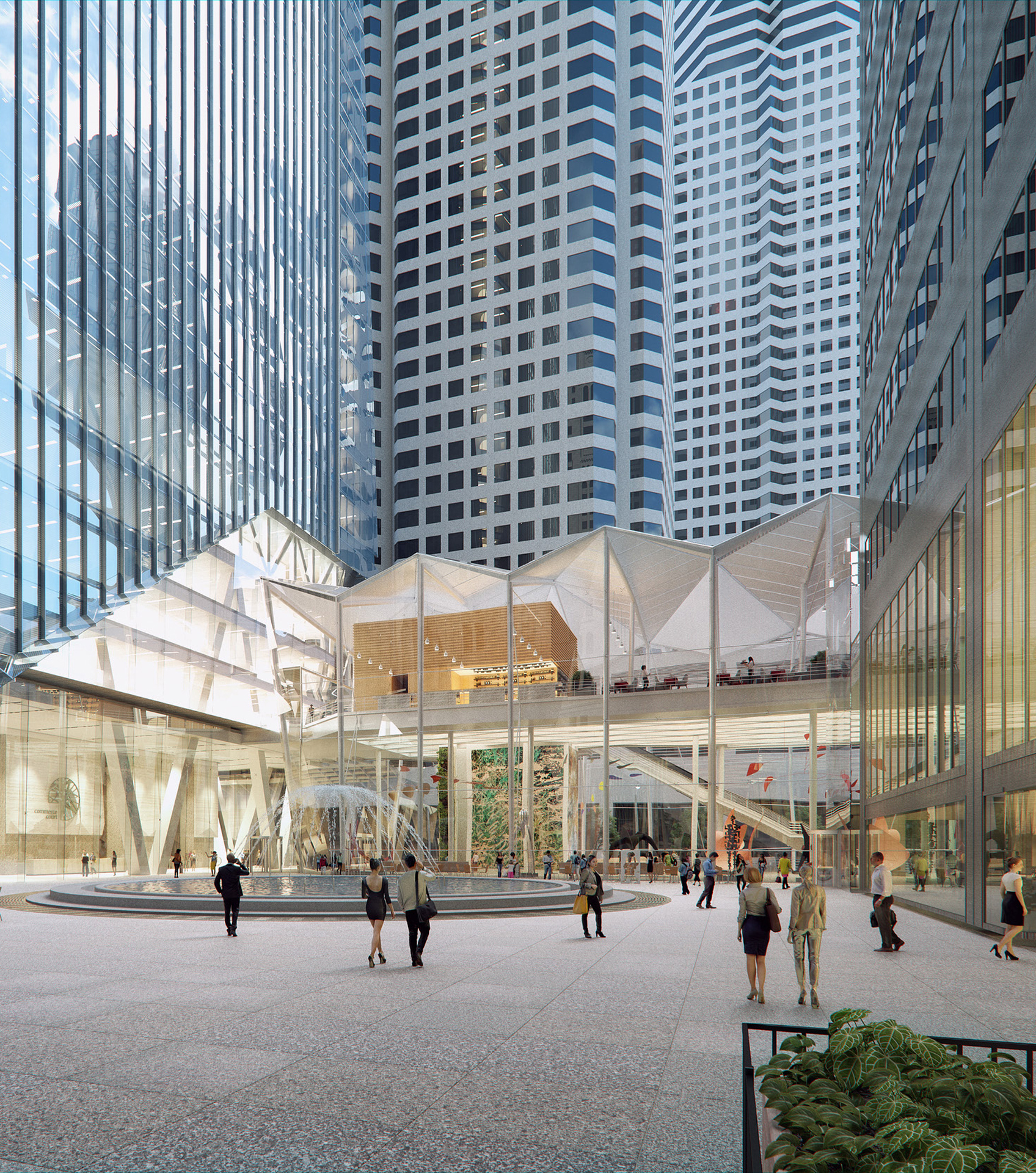 A key component of the redevelopment plan is the creation of a new atrium building — the “Pavilion” — that will define a landmark gathering place in the heart of the Financial District, while considerably improving the quality of the public realm and re-defining the identity of this iconic site.