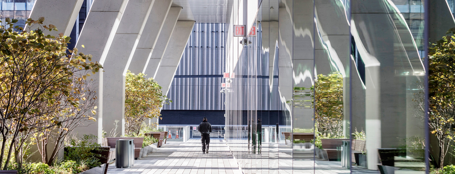 Designed by New York-based architectural firm, REX, the redevelopment modernized and fully integrated the 1.8 million sf building through an exterior re-cladding and interior renovation program including a new pleated glass façade which created floor-to-ceiling windows on every floor, serving to maximize daylight penetration while reducing solar gain. The interior program included a redesigned lobby, upgraded and expanded elevators, and enhanced HVAC and other mechanical systems. New retail storefronts are being incorporated along 31st, 33rd Streets and 10th Avenue with additional pedestrian connections extending over Dryer Avenue to Brookfield’s Manhattan West Project.