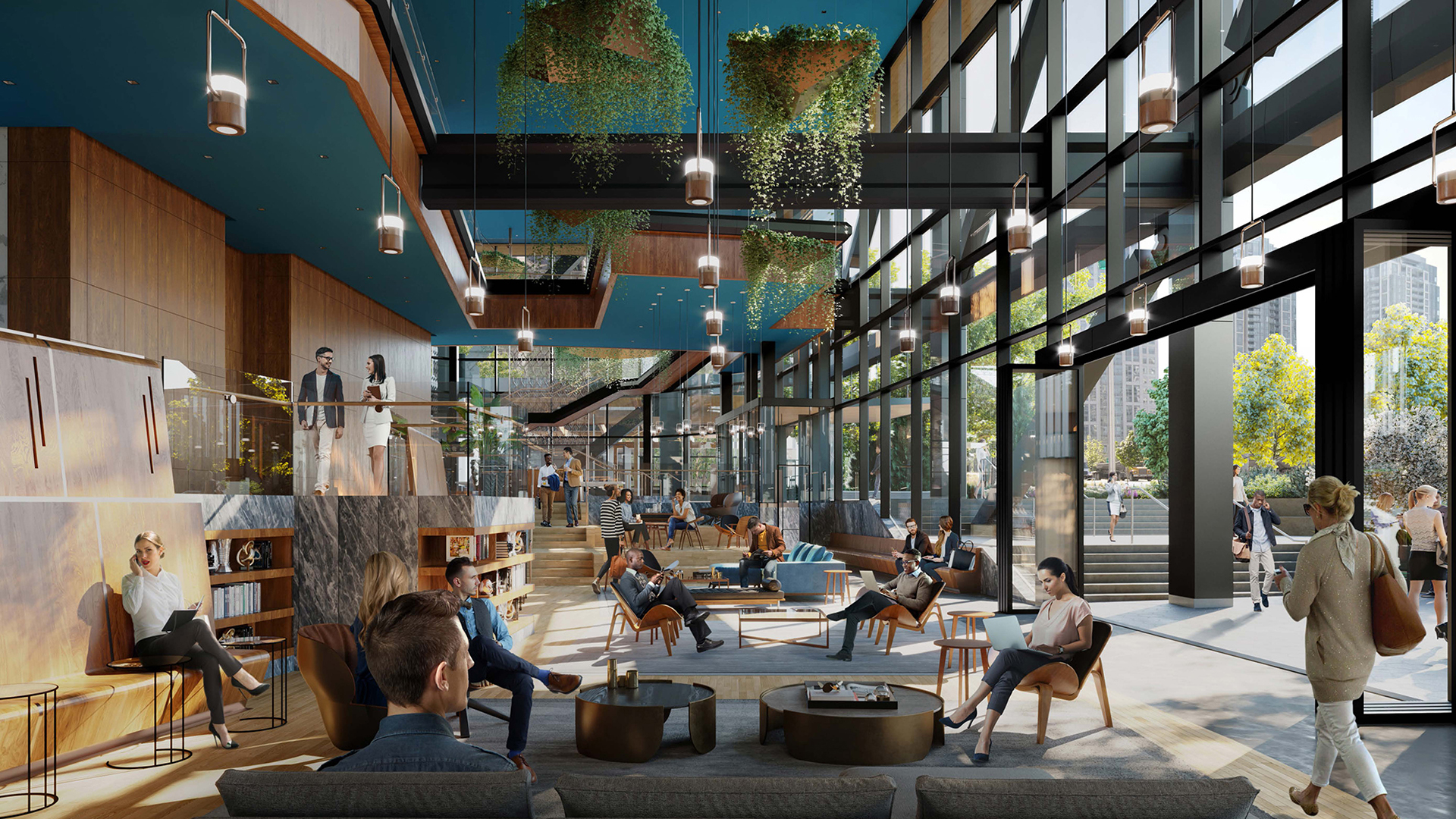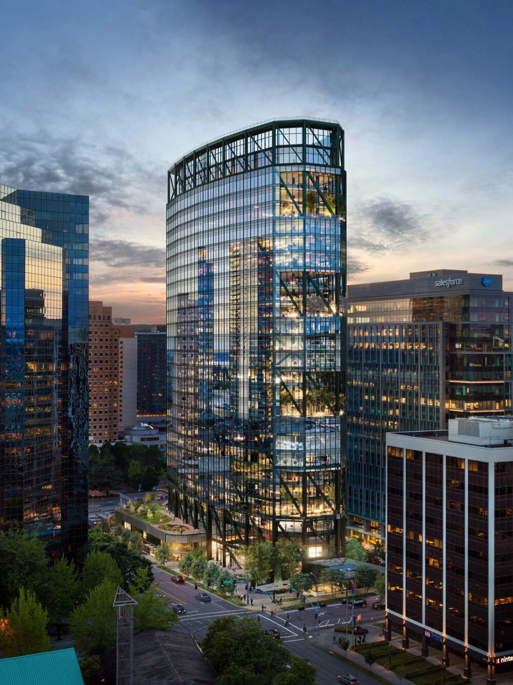 The development vision is centered on creating the most exciting office building in Bellevue by pushing the design norms for both the city and the market while ensuring greater human connection and collaboration; blending public and private spaces. The project’s energy builds from the ground level and is carried up the office tower.