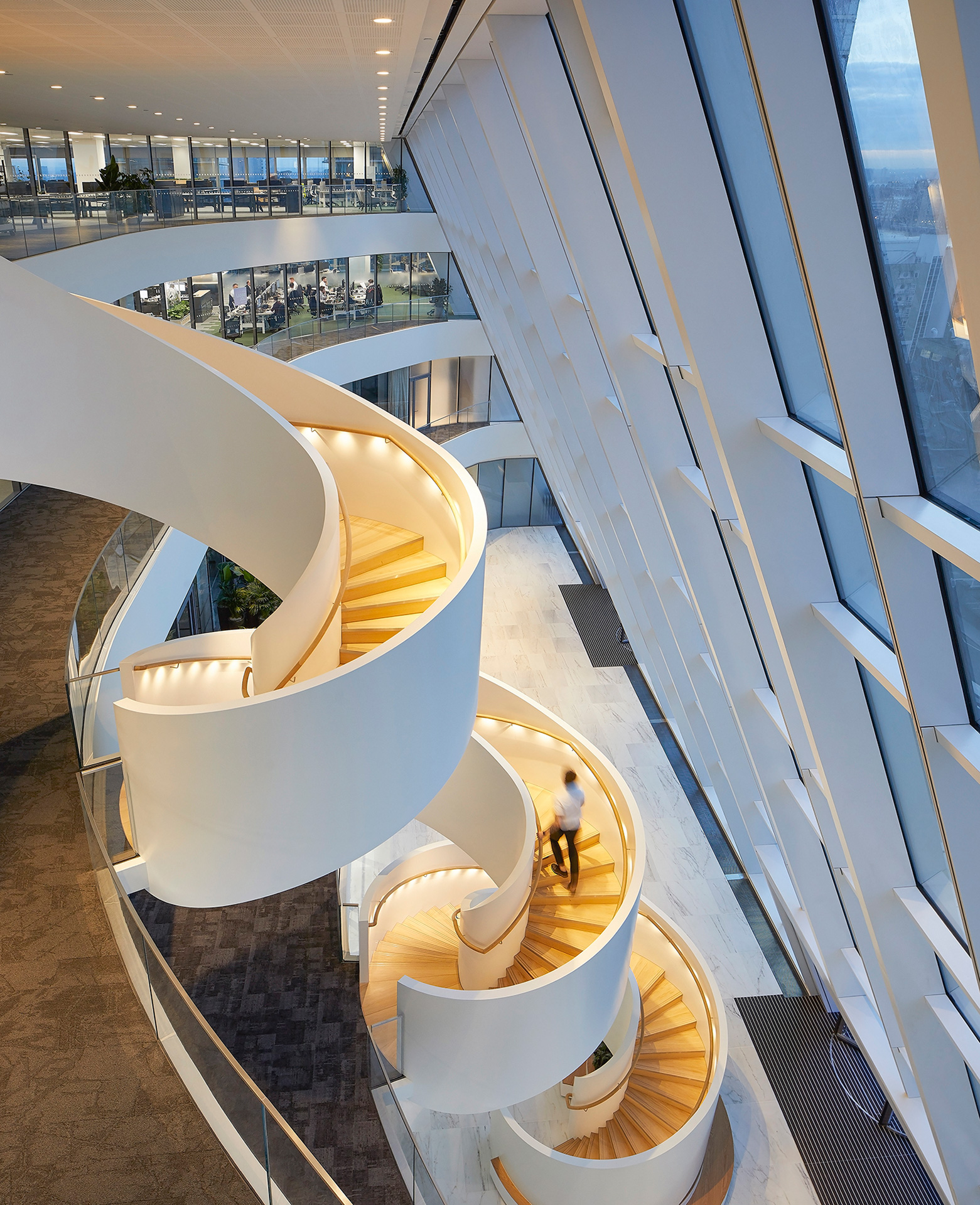Built on a prominent waterside site – one of the last remaining commercial lots on Canary Wharf Estate – this 26-storey tower’s sweeping façade is informed by the building’s context and internal functionality. Although designed as a multi-tenant building, the project saw the design team work closely with a primary tenant to establish a brief and incorporate the company’s specific requirements into the final design.