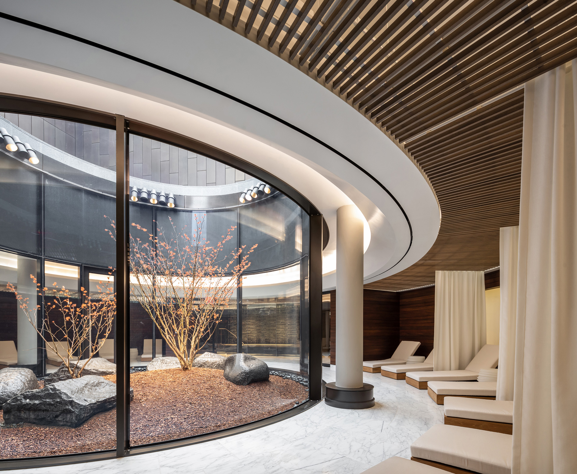 Residents of One Manhattan Square enjoy more than 100,000 square feet of resort-like amenities designed by Meyer Davis Studio spanning four floors. The Club Level features a luxurious spa centered around a tranquil courtyard, swimming pool, basketball court, 70-person movie theater, and performance space, cellar bar and lounge, wine tasting room, and laundry and alterations. The Ground Floor features a double-height grand lobby with two seating areas and fireplaces, a private motor court, package delivery, and bicycle storage. The Third Floor Garden Level is devoted to indoor and outdoor opportunities featuring a culinary lounge and demonstration kitchen, business center, teen game room, and indoor children’s playroom. Outdoor amenities feature a children’s playground, social courtyards, relaxation lawns, fire pits, and outdoor kitchen and dining. Finally, the Fitness Level features a state-of-the-art weight room, cardio room, four fitness studios, cardio, dance, and yoga classes.