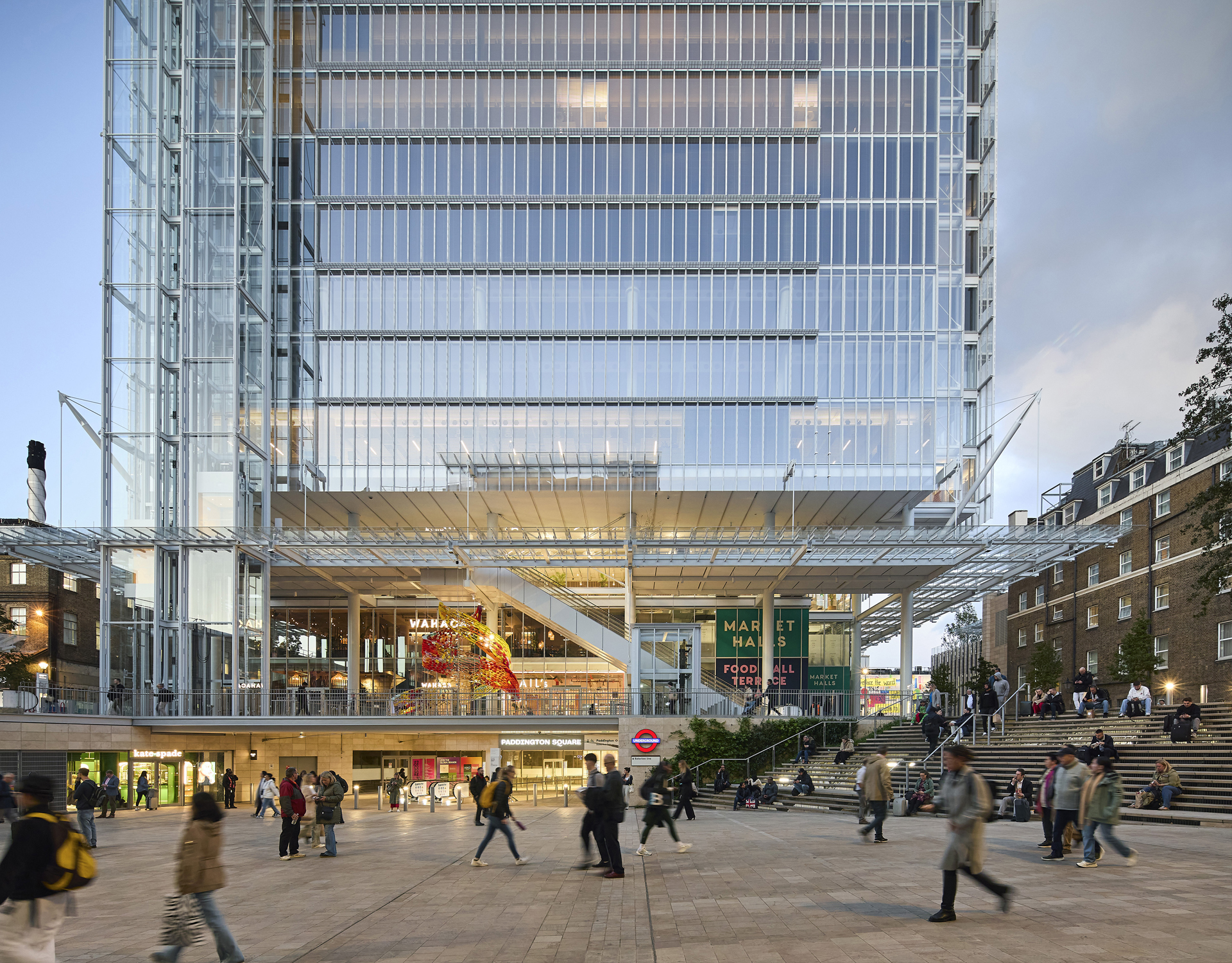 Designed by Renzo Piano Building  Workshop, this 18-storey cubic building comprises 14 office floors that will provide high-performance working spaces for more than 4,000 people, bringing valuable employment opportunities to the Paddington area. The remaining floors will accommodate retail,  restaurants, bars, cafes, and shops.
