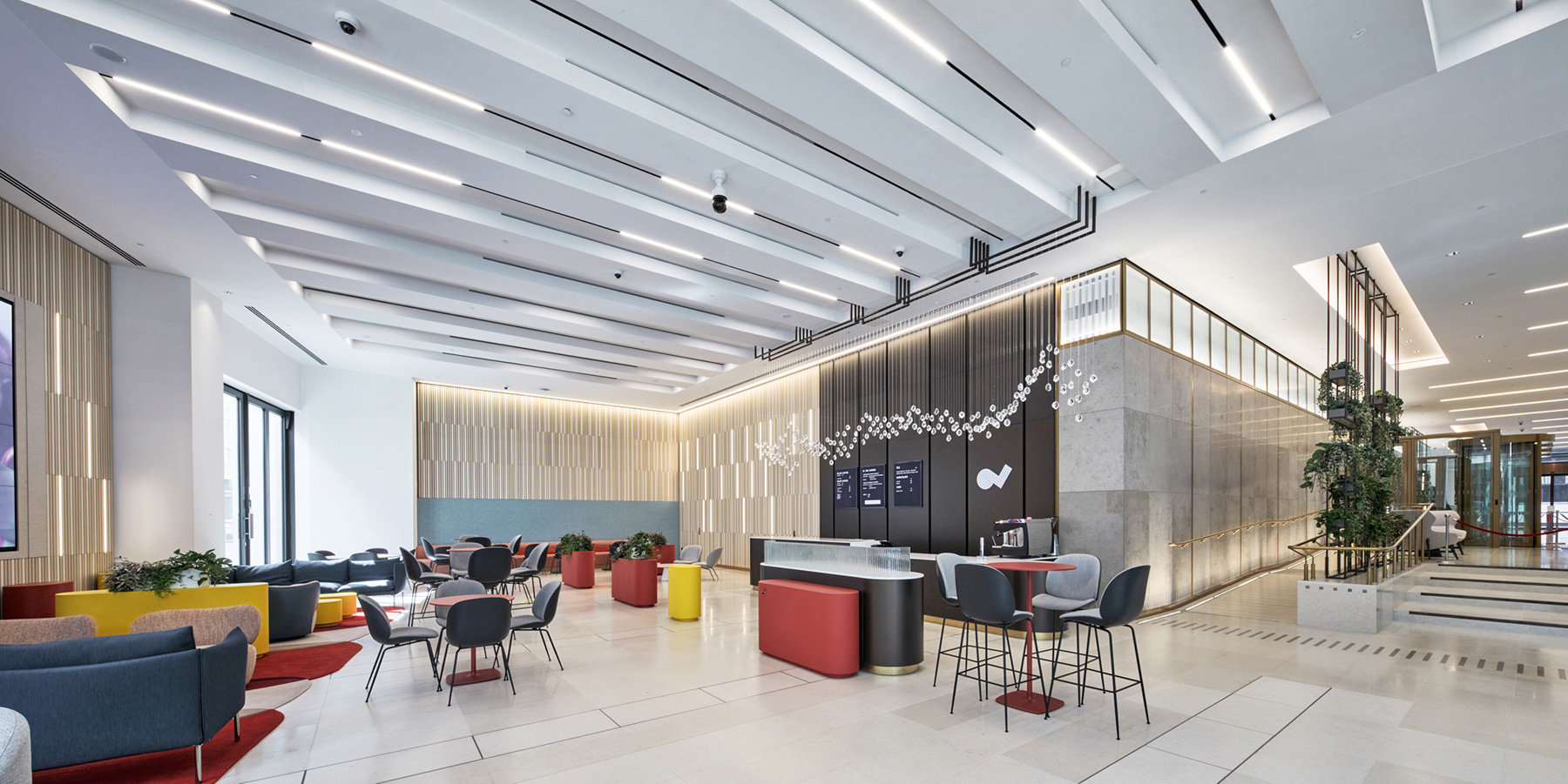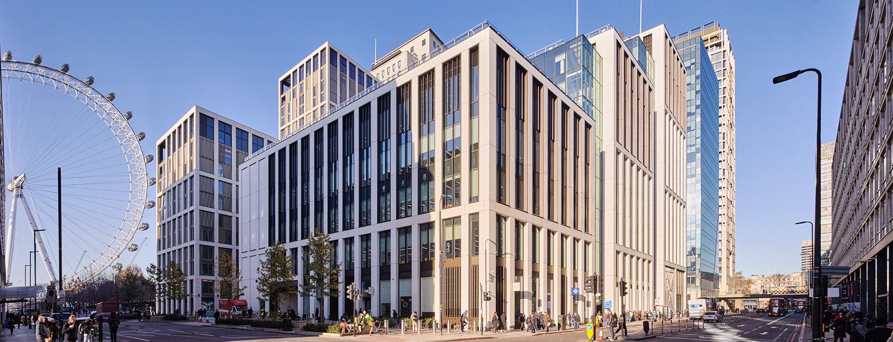 The new buildings integrate with vibrant public areas, while new pedestrian routes connect nearby Waterloo Station with the South Bank of the River Thames. A ‘city square’ at the heart of the scheme provides open space and enable navigation.