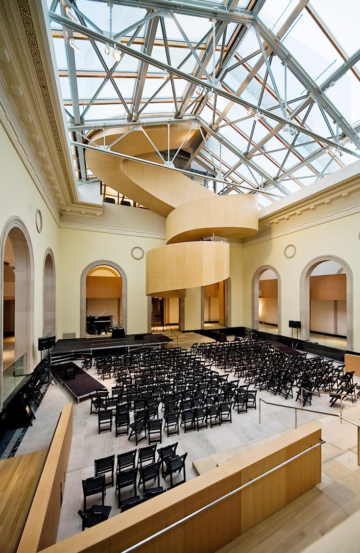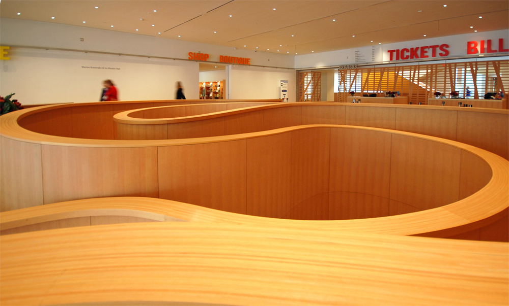 Highlights of the design included the use of Douglas-fir glulam arches, steel, and glass. Abundant in natural light, the amber of wood, and the views of the sky and city, the AGO has become an indelible architectural landmark in North America.